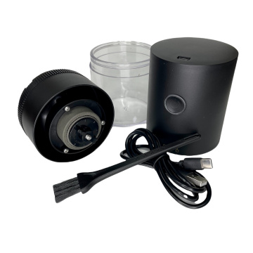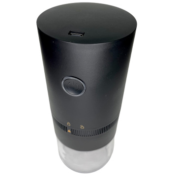 Кофемолка электрическая портативная, с керамическими жерновами, возможностью зарядки устройства и  с регулировкой степени помола, от самого крупного (под френч пресс) до мелкого (под эспрессо). Так же кофемолка оснащена двумя резервуарами- для зернового и для молотого кофе.